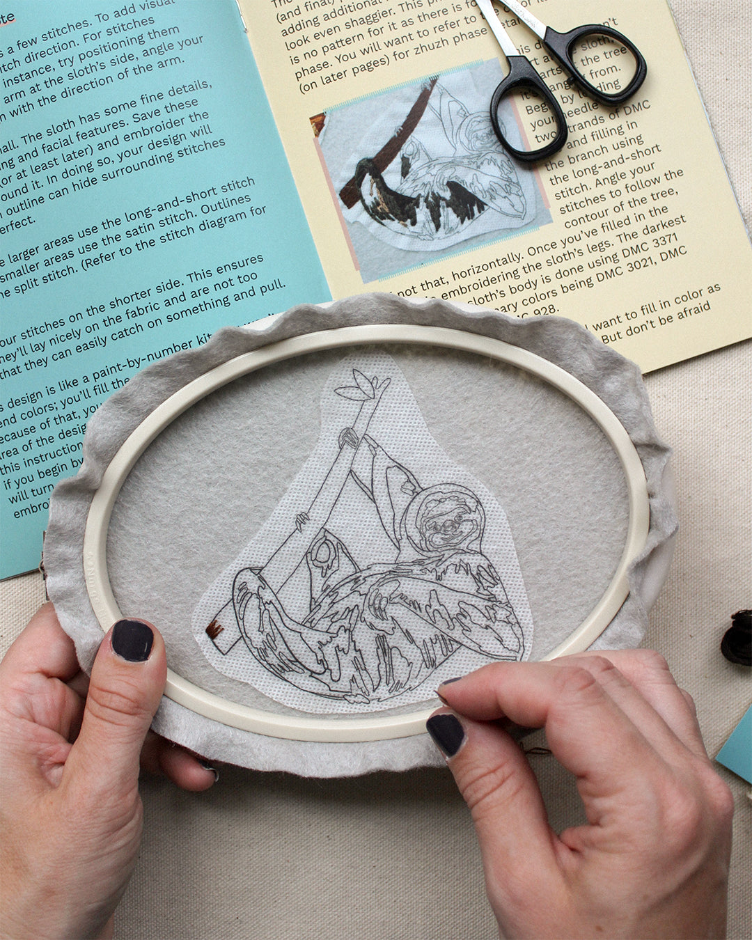 - Stick-on, wash-away sloth pattern